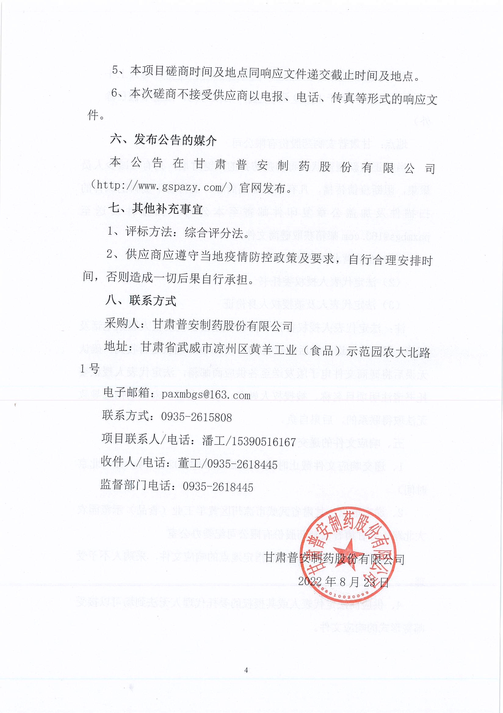 甘肅普安制藥股份有限公司年產(chǎn)5000萬盒(3億支)宣肺止嗽合劑等液體制劑生產(chǎn)線升級(jí)改造項(xiàng)目工程造價(jià)咨詢競(jìng)爭(zhēng)性磋商公告