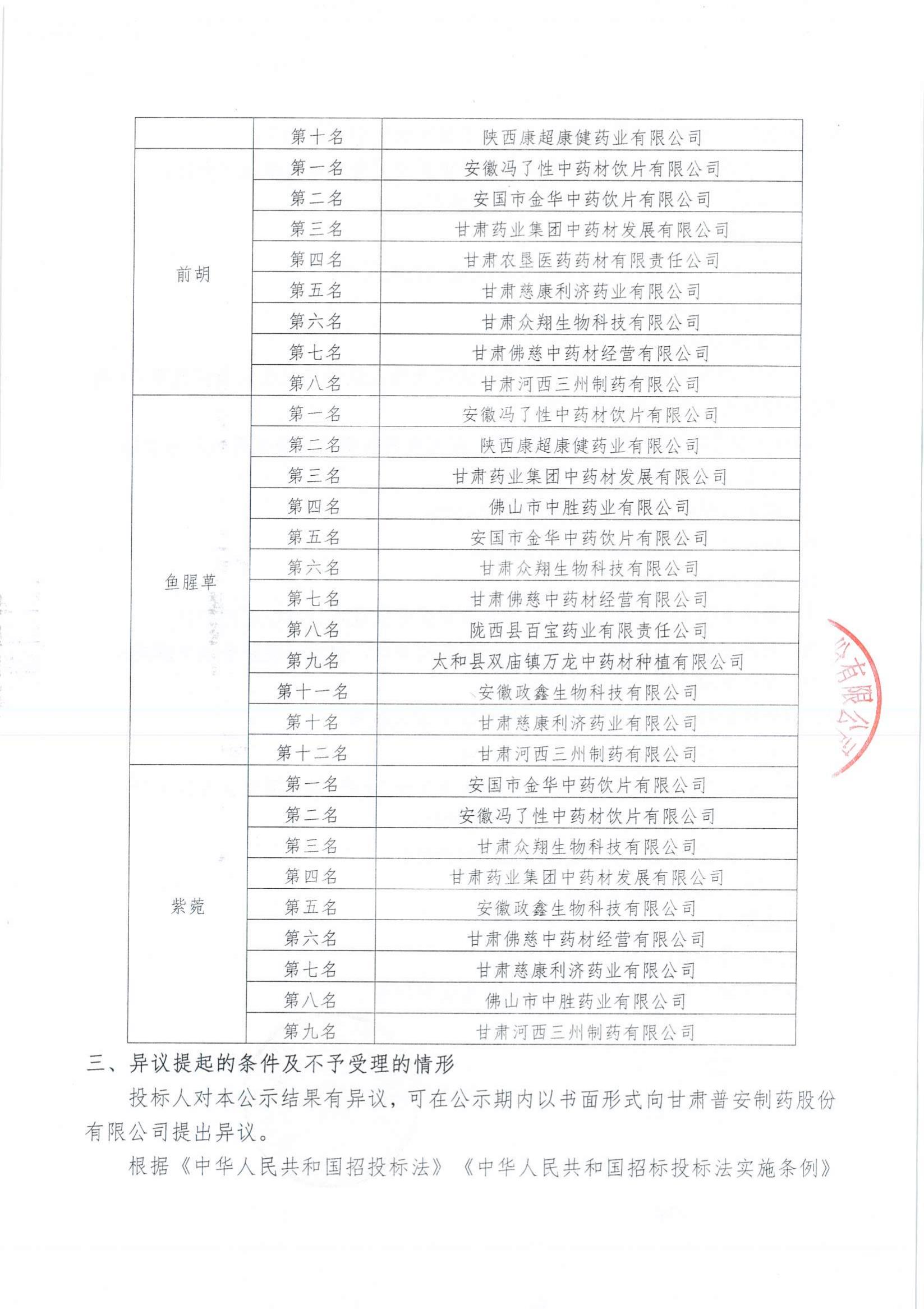 甘肅普安制藥股份有限公司2022年10月-2023年10月中藥材招評標結(jié)果公示