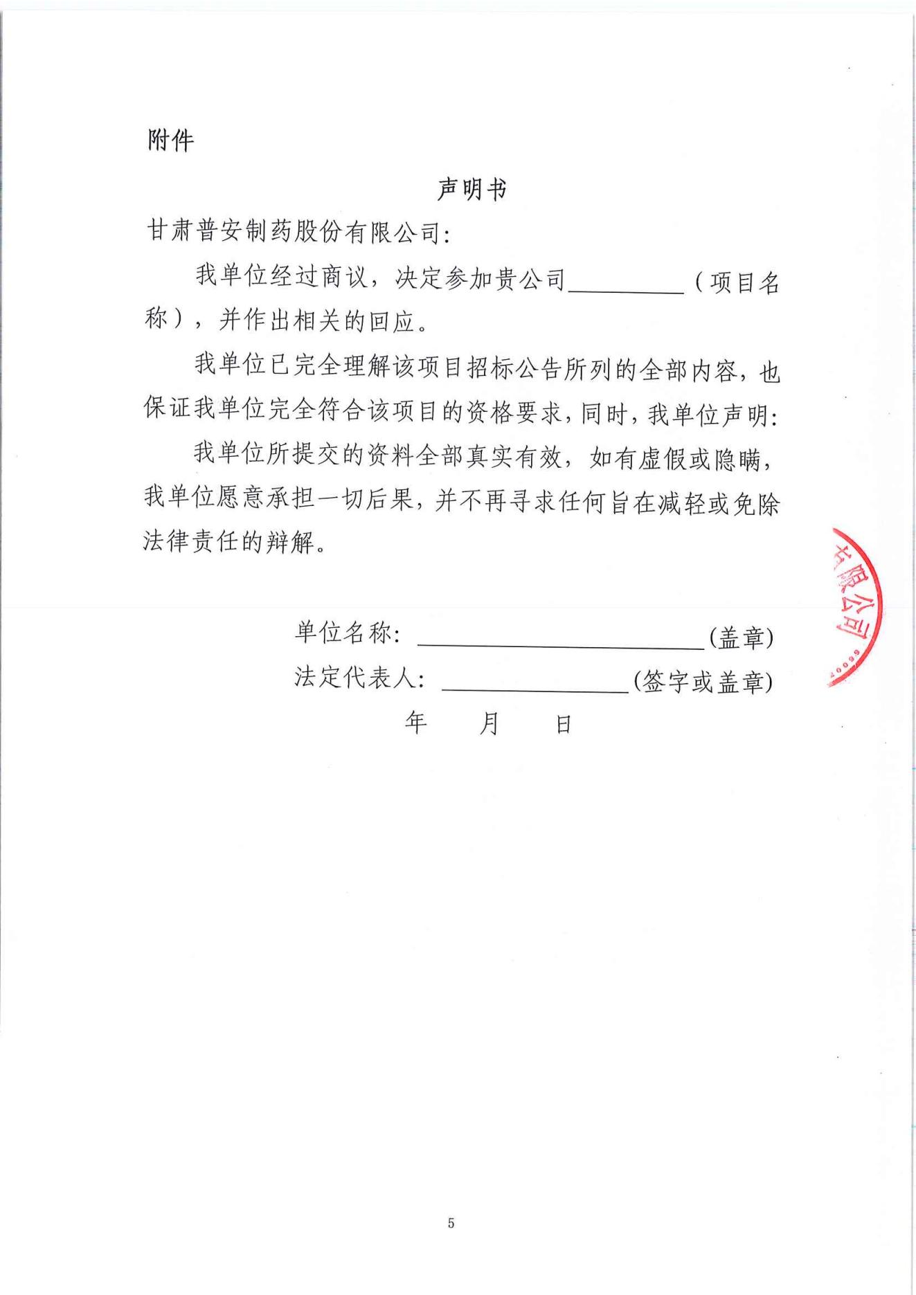 甘肅普安制藥股份有限公司年產5000萬盒(3億支)宣肺止嗽合劑等液體制劑生產線升級改造項目安全設施設計驗收服務招標公告