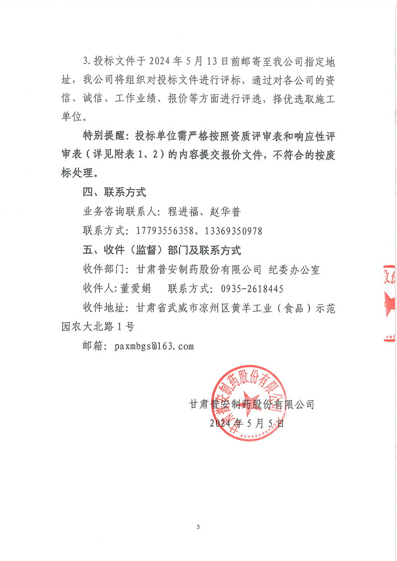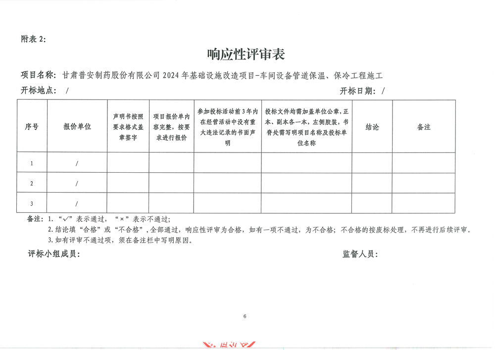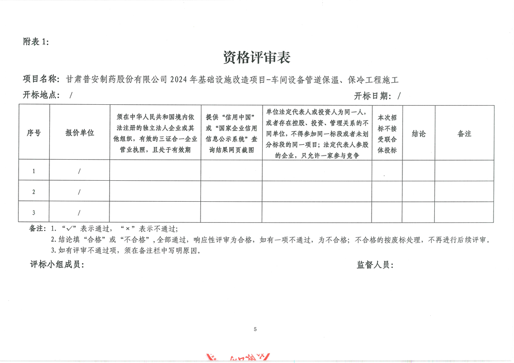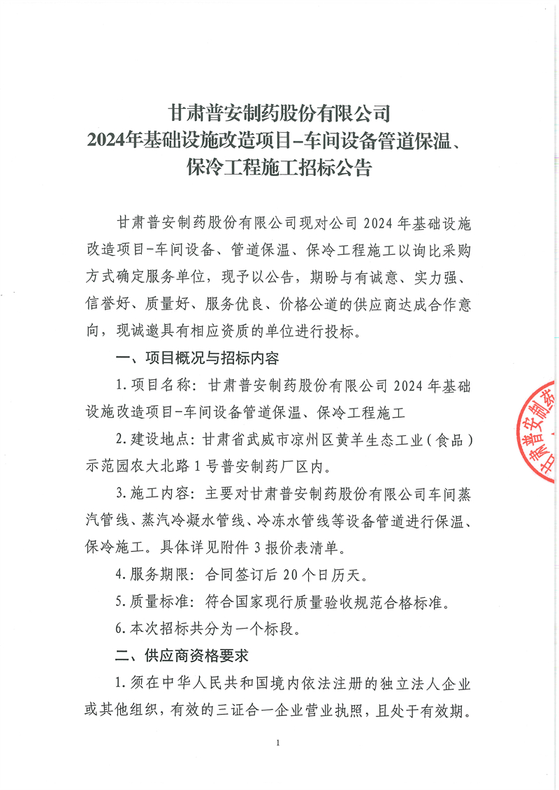 甘肅普安制藥股份有限公司2024年基礎設施改造項目-車間設備管道保溫、保冷工程施工招標公告
