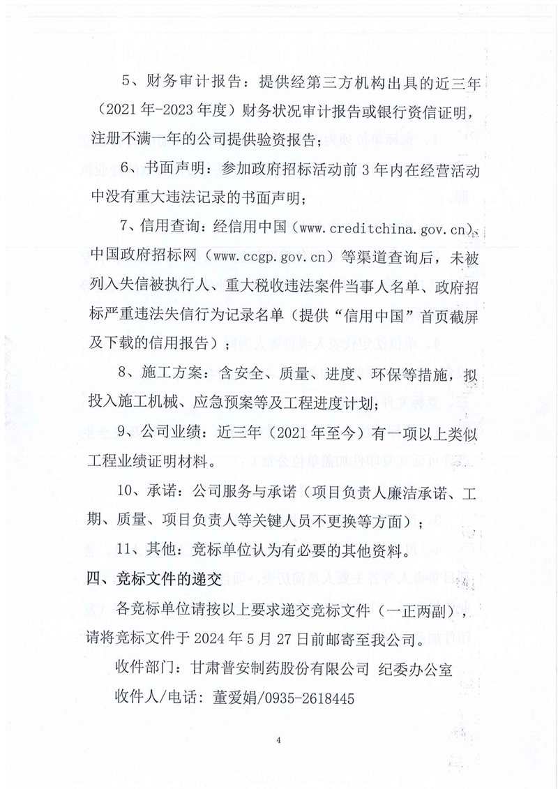 甘肅普安制藥股份有限公司2024年基礎設施改造項目-舊污水站設備設施及廠房拆除工程競爭性磋商公告