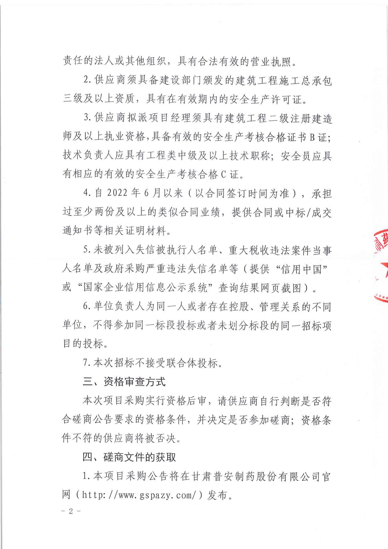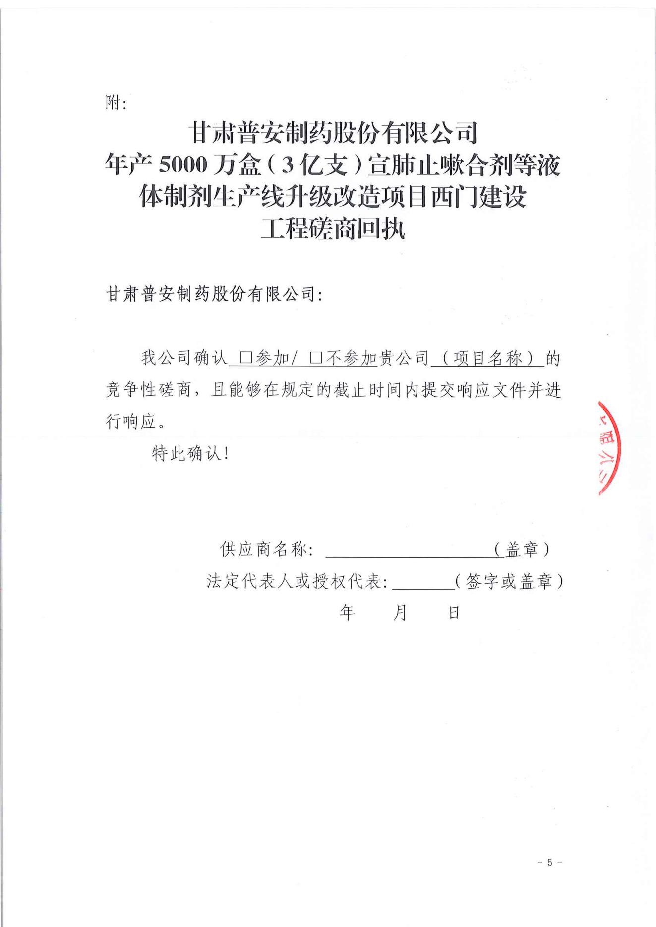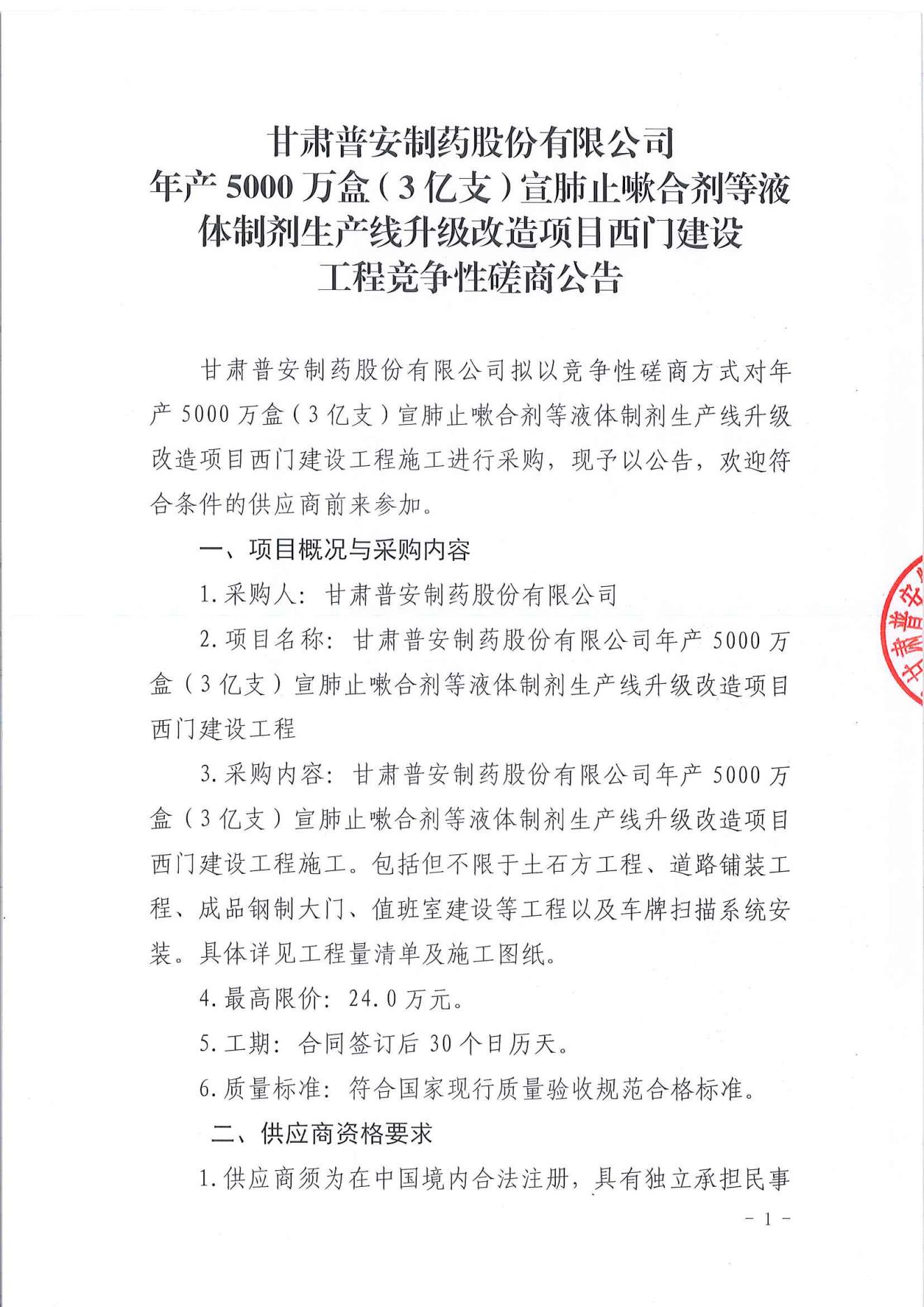 甘肅普安制藥股份有限公司年產(chǎn)5000萬盒(3億支)宣肺止嗽合劑等液體制劑生產(chǎn)線升級改造項目西門建設(shè)工程競爭性磋商公告