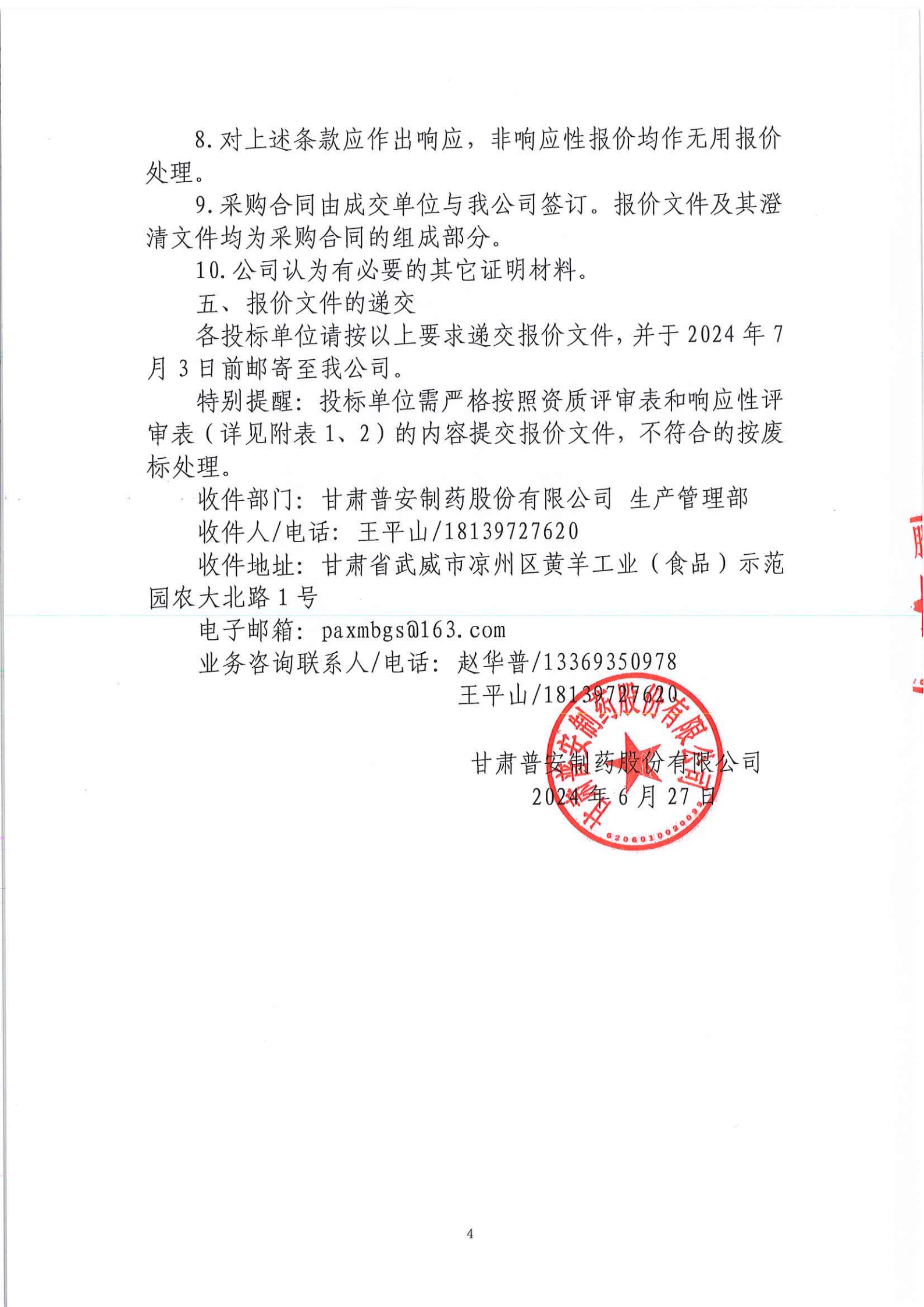 甘肅普安制藥股份有限公司2024年基礎設施改造項目-提取車間通風設備采購項目招標公告