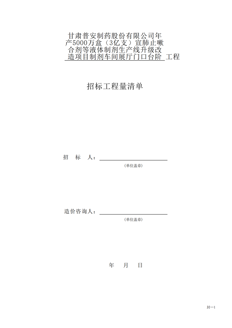 甘肅普安制藥股份有限公司年產5000萬盒(3億支)宣肺止嗽合劑等液體制劑生產線升級改造項目制劑車間展廳門口臺階工程招標公告