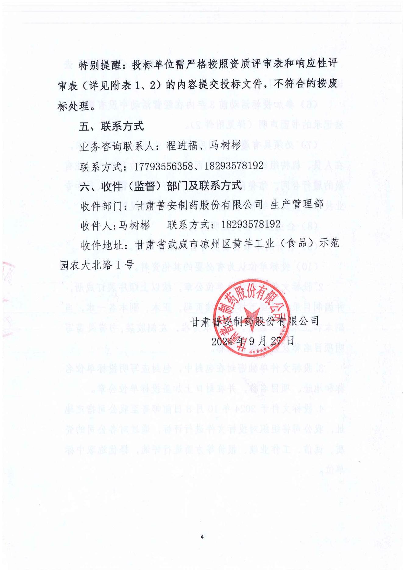 甘肅普安制藥股份有限公司污水處理站污泥屬性鑒別服務單位招標公告