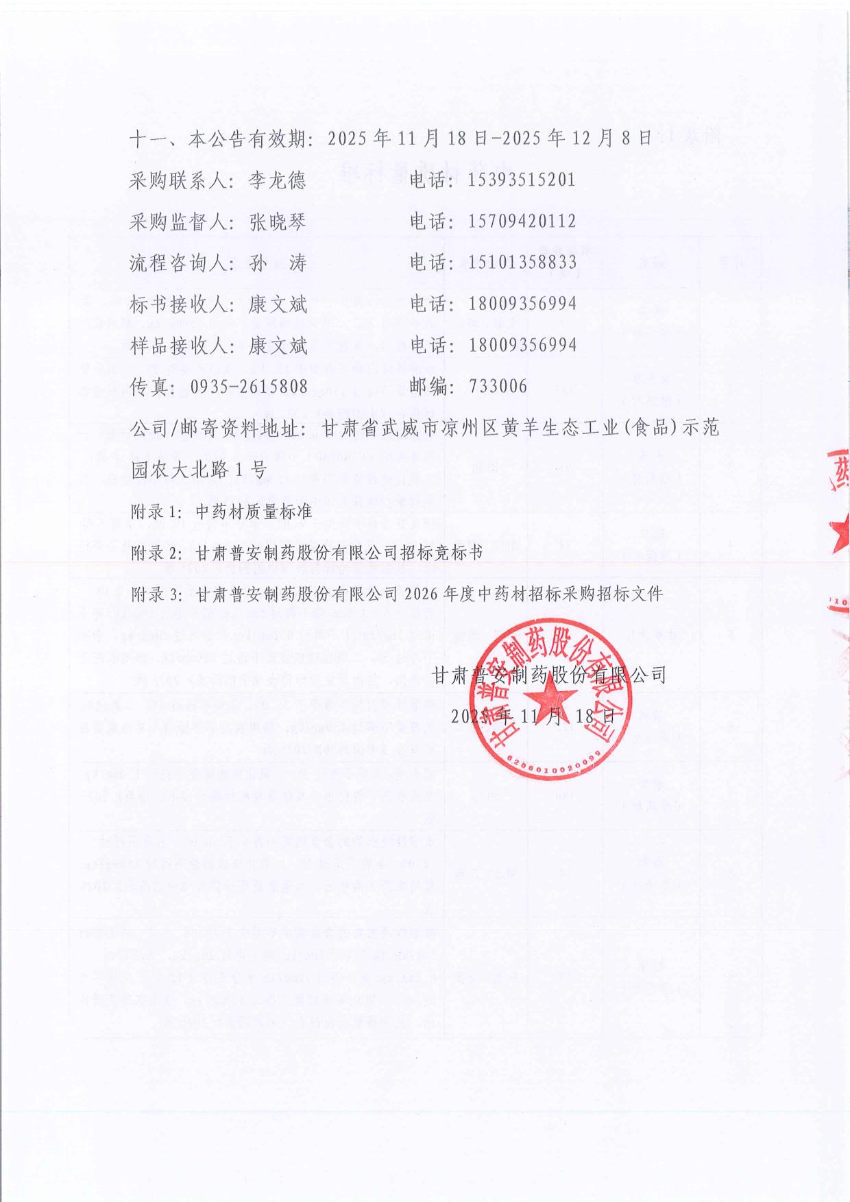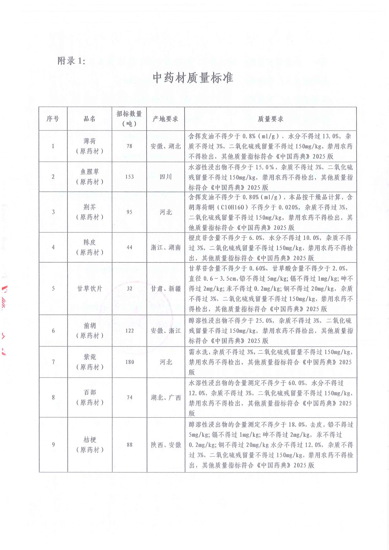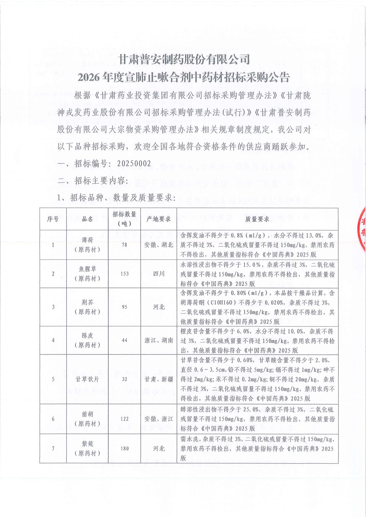 普安制藥2026年宣肺止嗽合劑中藥材招標(biāo)公告