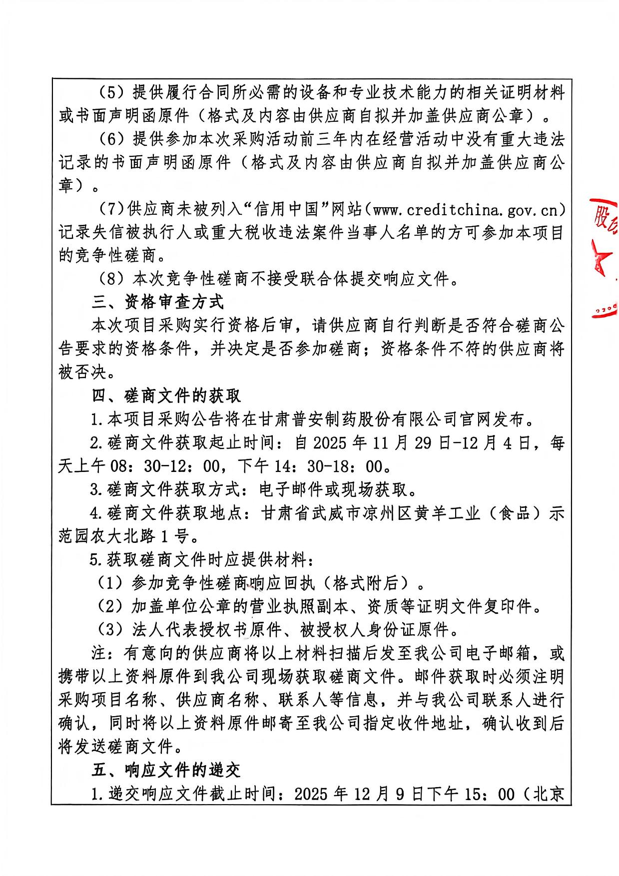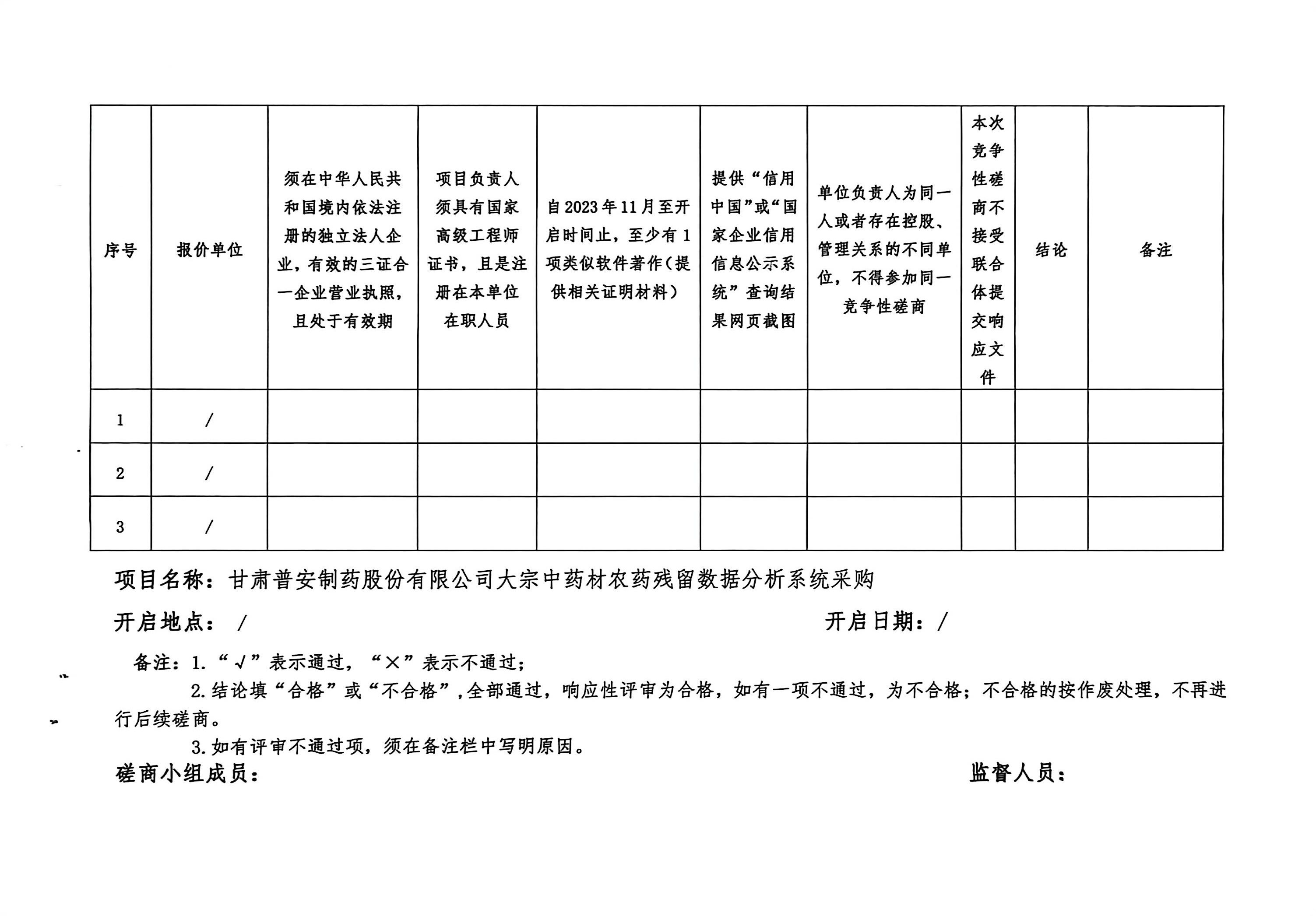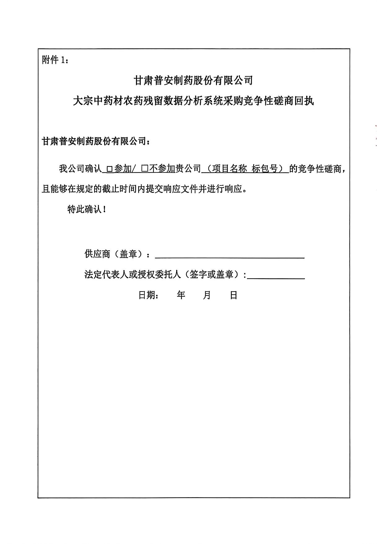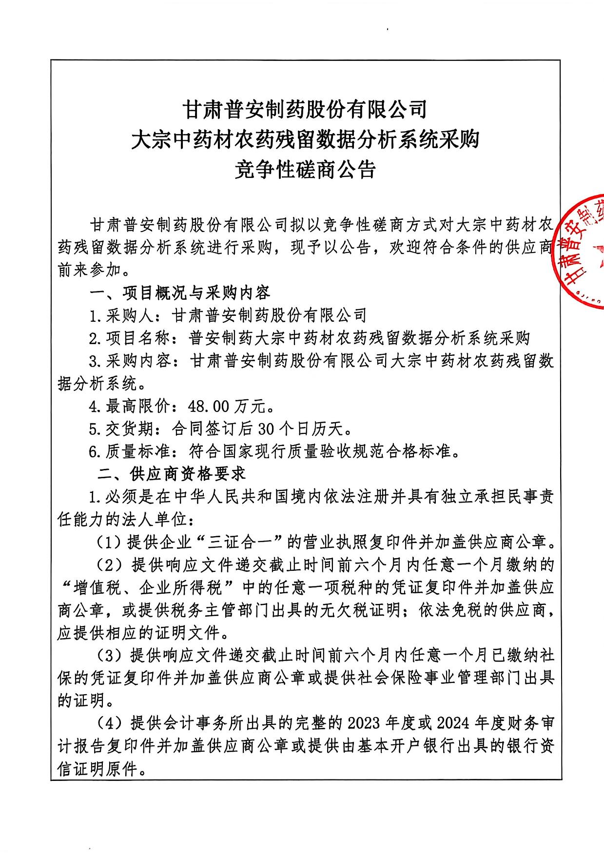 甘肅普安制藥股份有限公司大宗中藥材農藥殘留數據分析系統采購競爭性磋商公告