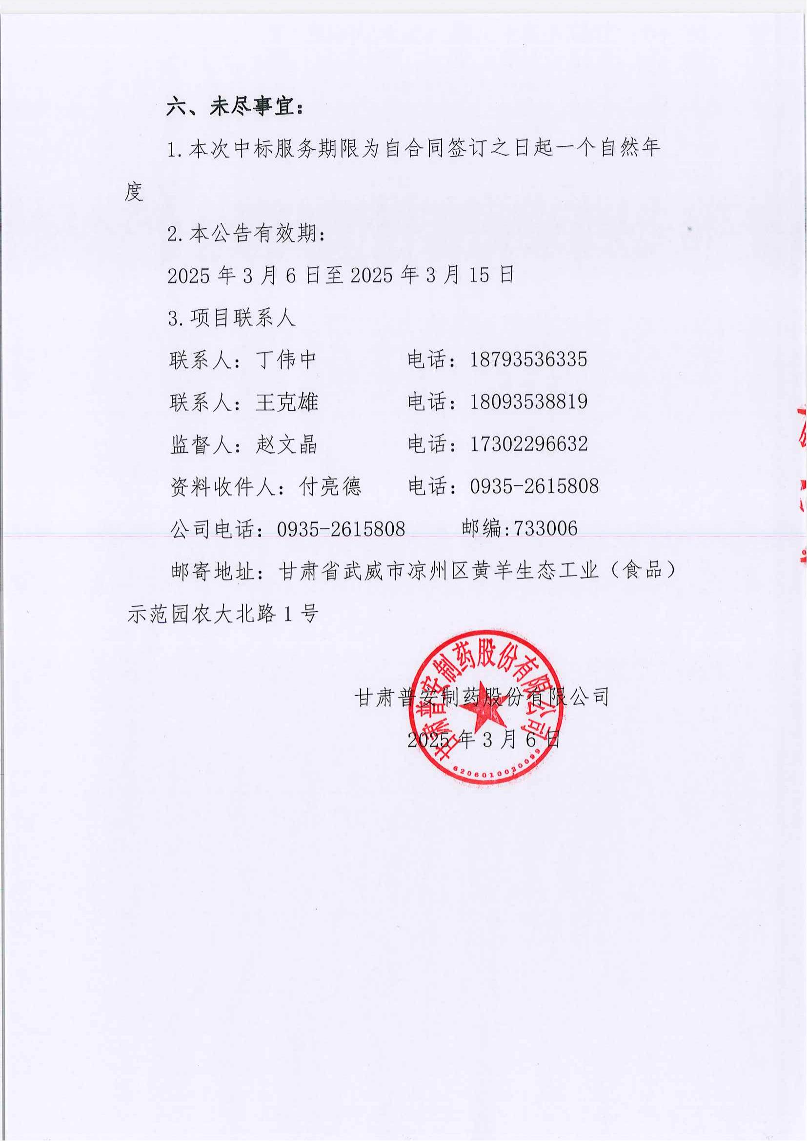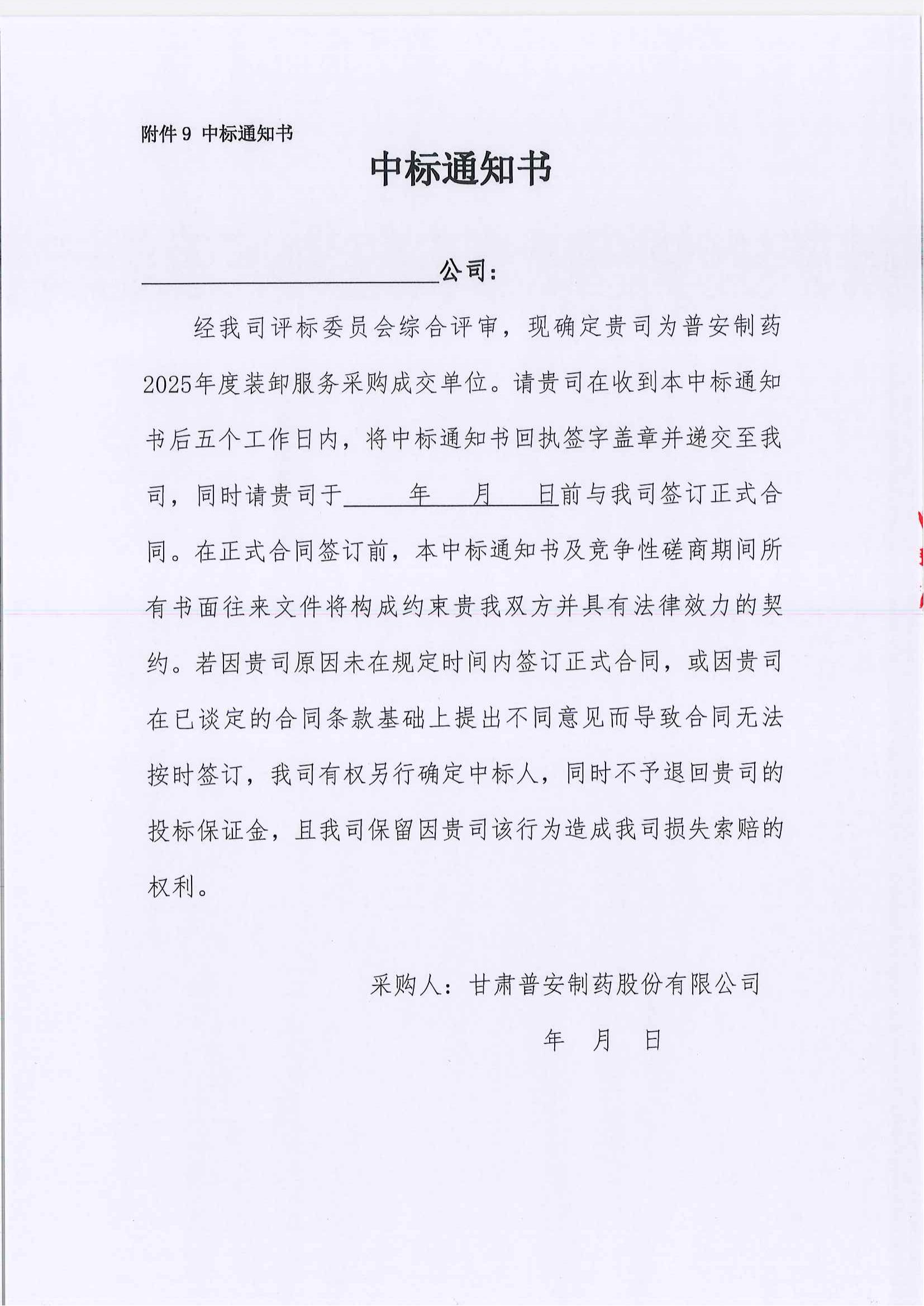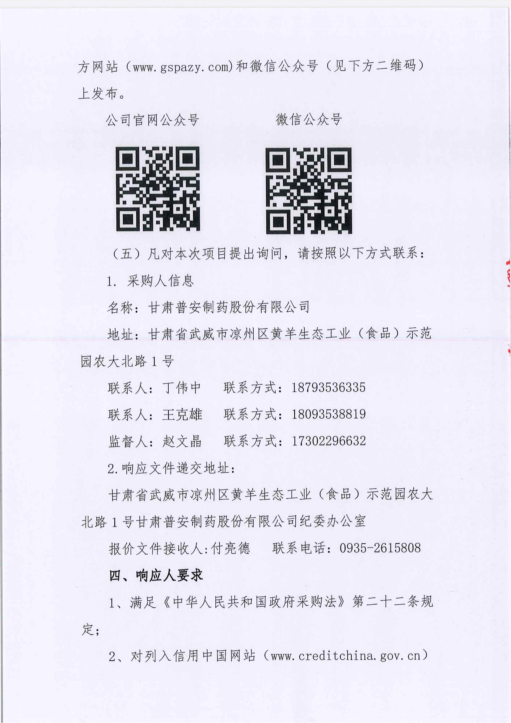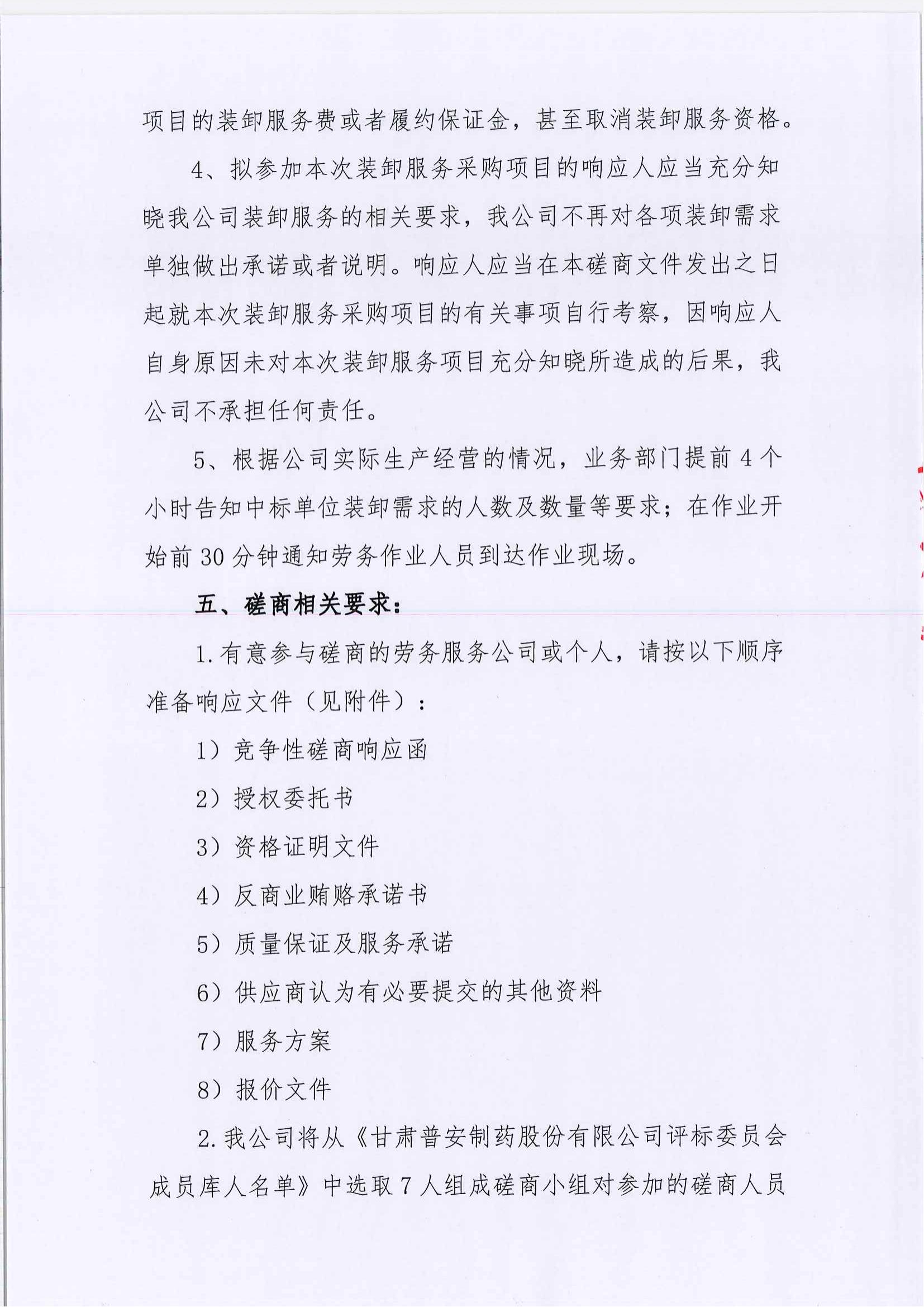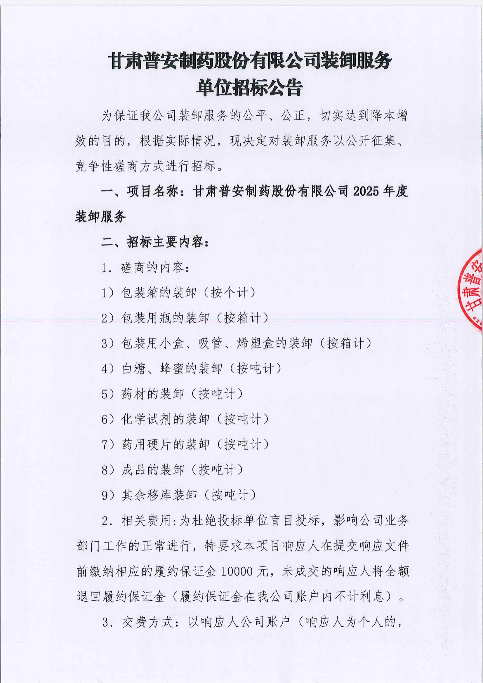 甘肅普安制藥股份有限公司裝卸服務單位招標公告
